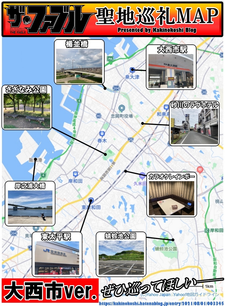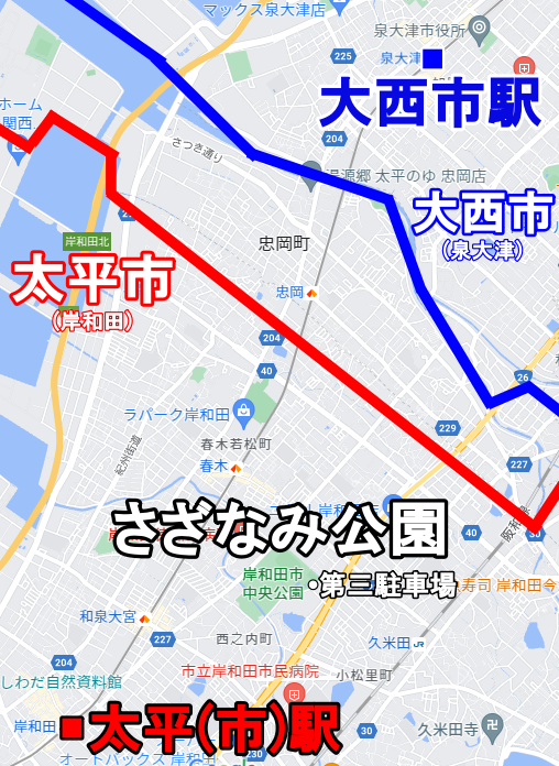 作中では大西市は隣町という設定みたいなのですが、現実でも(厳密には忠岡町がありますが)ほぼ隣町のようなものであります笑